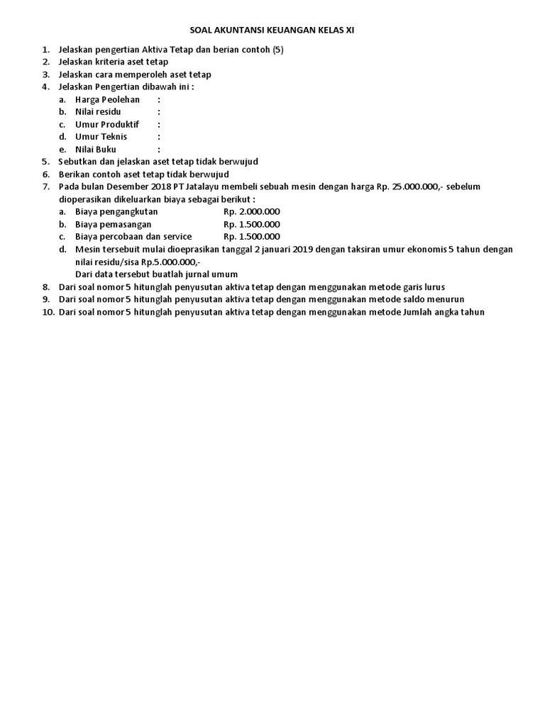 Soal akuntansi keuangan kelas 11.