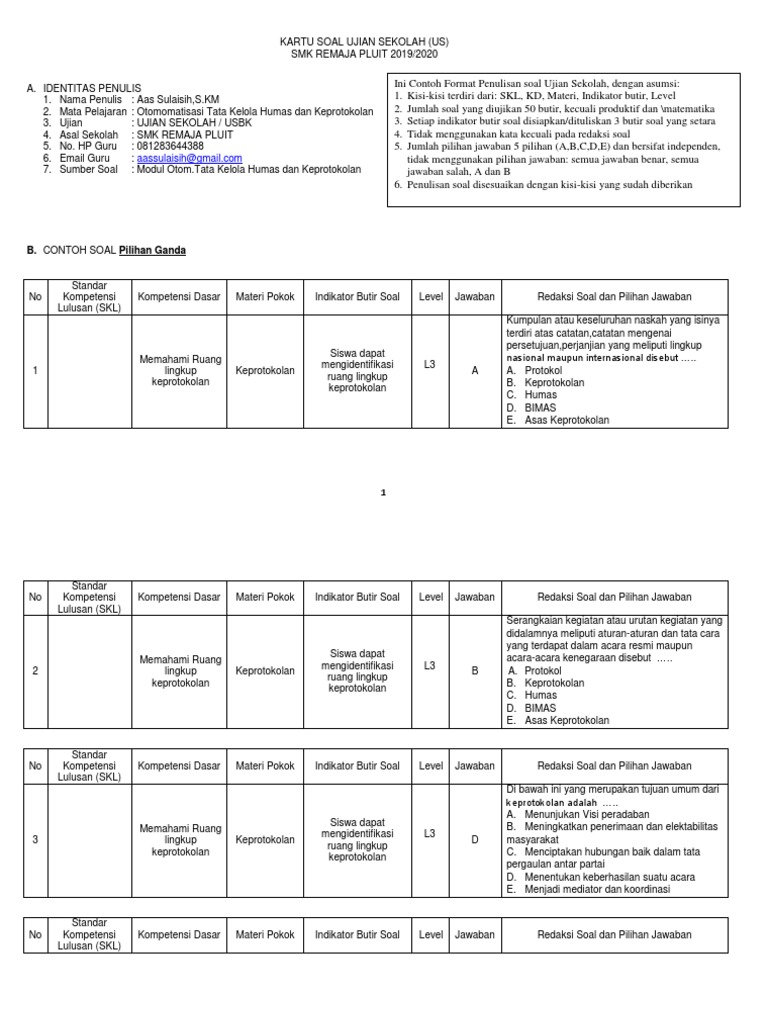 Berikut contoh soal keprotokolan dan humas kelas xi managemen perkantoran lengkap berta jawabanya pilihan ganda, kalian juga dapat mengunduh file soal ini disini. Download soal pilihan ganda dan jawaban humas dan keprotokolan kelas xi. 4 responses to latihan soal otomatisasi tata kelola keuangan unknown 6 desember 2018 0553 blog ini sangat membantu kegiatan pembelajaran dengan adanya kuislatihan soal apalagi jika. Administrasi humas dan keprotokolan kelas/ semester : Soal humas keprotokolan dan jawaban pilihan ganda.